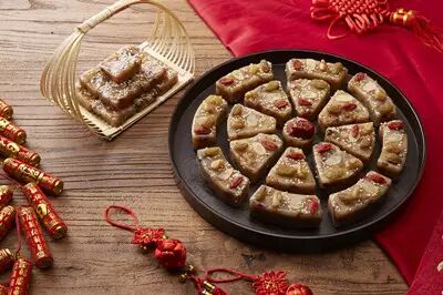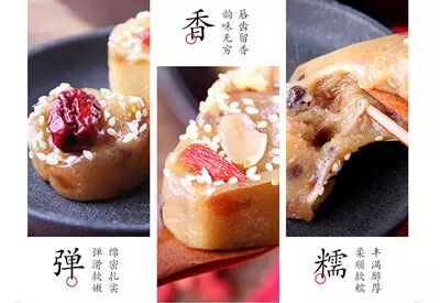 元祖团圆年糕,调以桂圆、核桃、红小豆为铺底