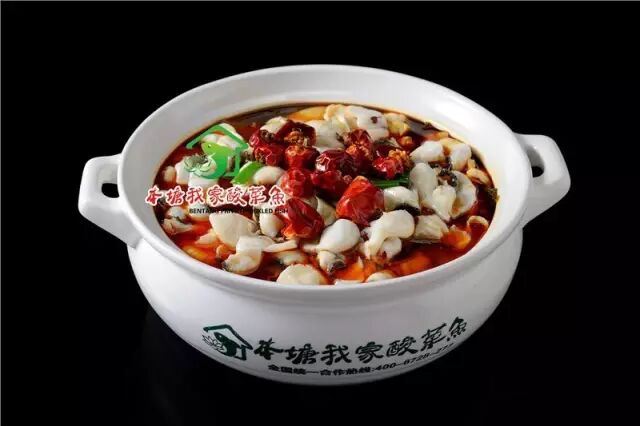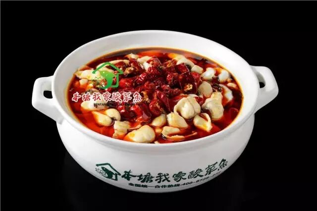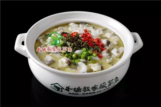 本塘·我家酸菜鱼用的是原生态黑鱼,正宗秘制古坛酸菜,自制独特本塘我家宽粉的完美结合,肉质细嫩酸菜咸酸可口,汤酸香鲜美,微辣不腻;鱼片嫩滑爽口。